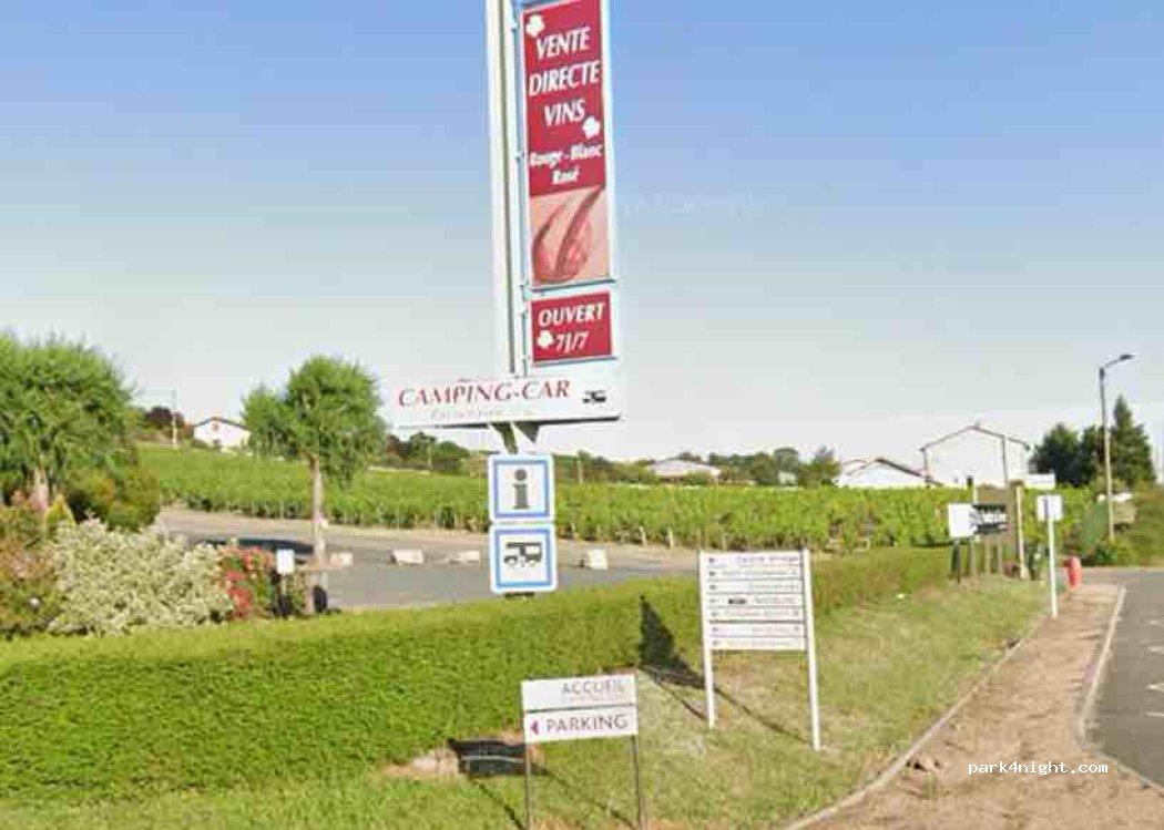 vraiment artisanale ! au centre de la place en gravillonnée avec accès peu large : une vidange eau grise peu large, une vidange eau noire WC sous une plaque métallique rouillée et inconfortable à manipuler, et si vous voulez de l'eau vous devez demander au magasin des vignerons qui vendent du vin... s'il est ouvert ! au bord de la route départementale, passante donc bruyante