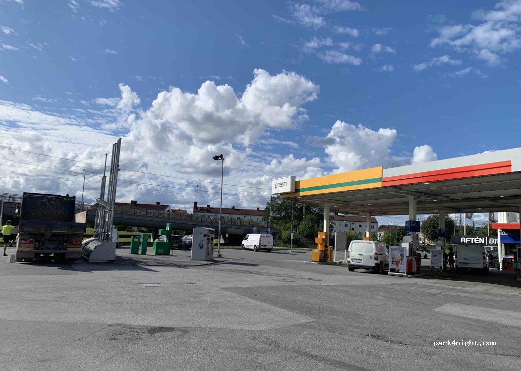 Kostenlose Trinkwasserauffüllung möglich bei der Tankstelle.