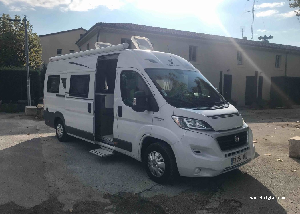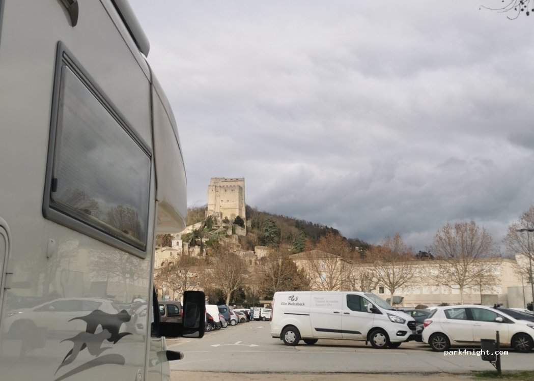 Nous y avons passé la nuit dans notre cc. Nous avons choisi le fond du parking moins rempli et moins éclairé. Il y a eu un peu de mouvements jusqu'à minuit et à partir de 8h environ (jour de marché hebdomadaire).