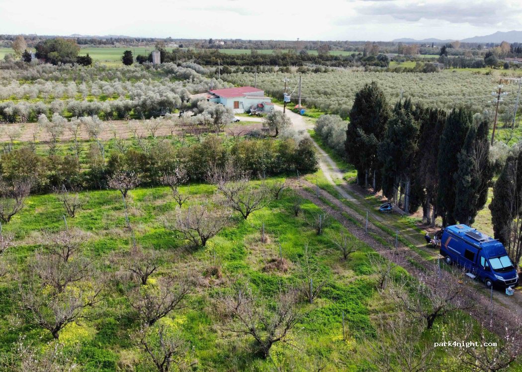 Ein kleiner schöner Platz auf einer Obstplantage. Wir wurden warmherzig empfangen, mit Obst verpflegt. Alles sehr unkompliziert, man kann auch Olivenöl, Marmelade, Eier und Obst kaufen. WC und Toilette tagsüber steht zur Verfügung.