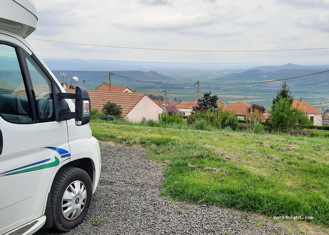 Une très belle vue sur la vallée ! Pas d’eau ni d’électricité, et pas d’éclairage la nuit. Ce qui nous permet d’admirer les étoiles par ciel clair ! Emplacement bien délimité, terrain plat. Nuit paisible, c’est le plus indispensable ! En revanche pour y accéder, il ne faut pas manquer la route d’Issoire ! Un grand merci à la commune ! Vraiment super~