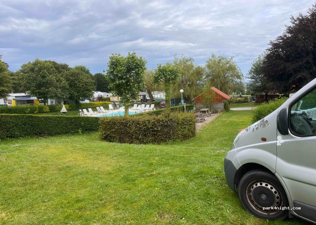 Camping des 5 chemins vertes, en el corazón de los Monts de Flandre, camping tranquilo de 4*, parcela para 4 o 5 autocaravanas, ligeramente inclinada. No se proporciona drenaje para autocaravanas. Salida para caminatas, recorridos en bicicleta.