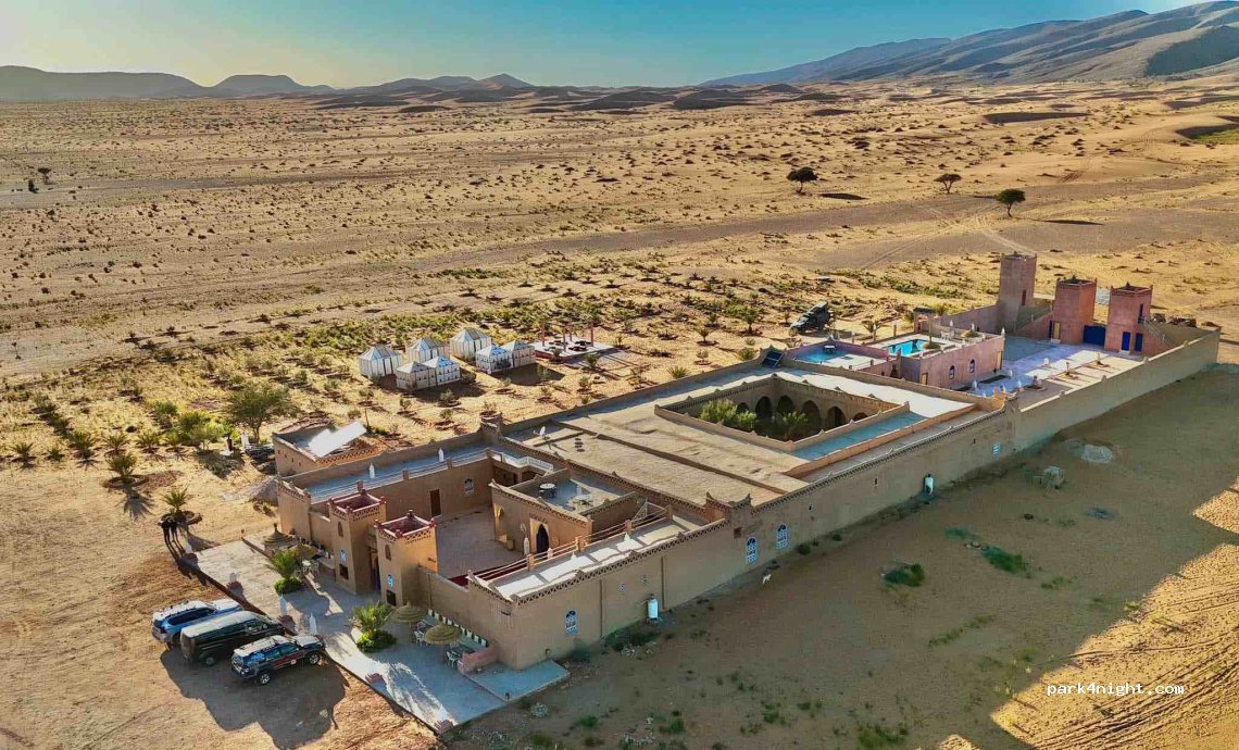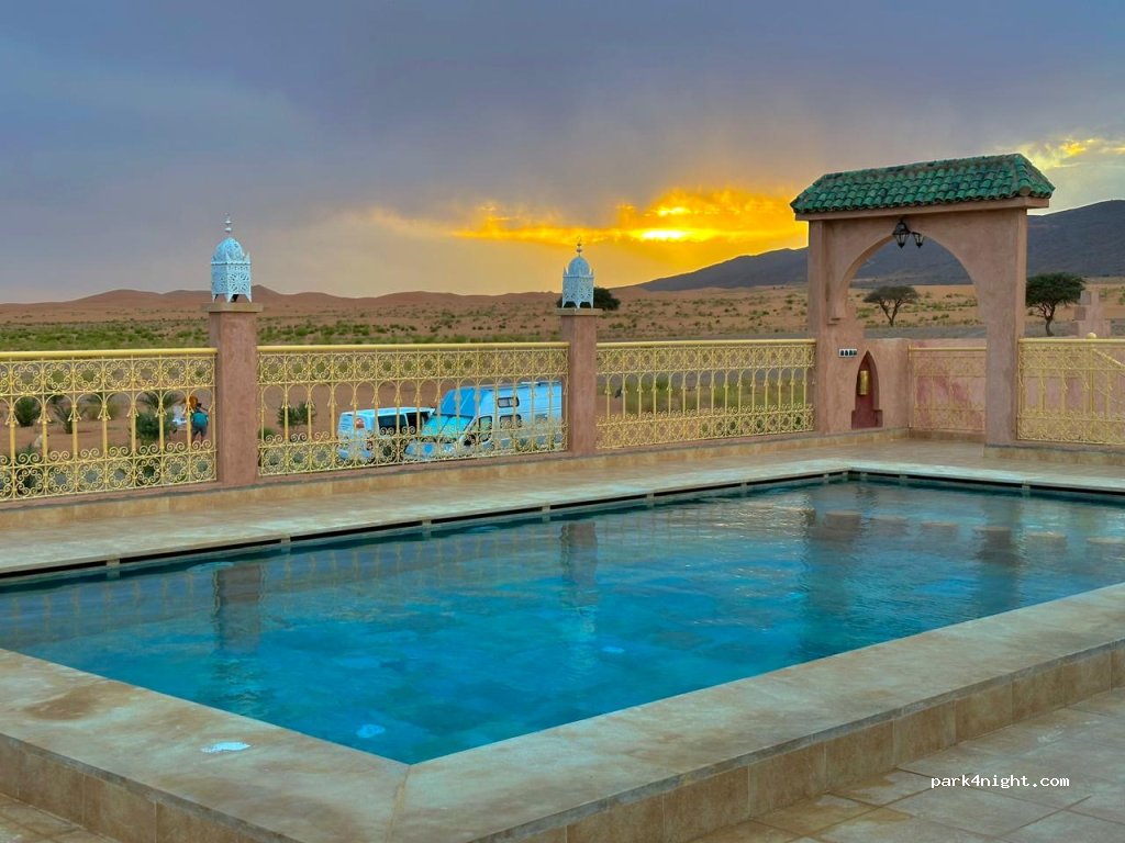 Un établissement très haut de gamme, chambres d'hôtes, accueil camping-car, une très belle piscine en terrasse à l'étage. Ici tout est parfait, l'accueil de Mustafa et son équipe pour une sortie dans les dunes, un bon repas dans une superbe salle à manger avec en prime un concert de djembé. Les tarifs sont raisonnables. Nous avons passé 4 jours inoubliables et nous reviendrons dès que possible.