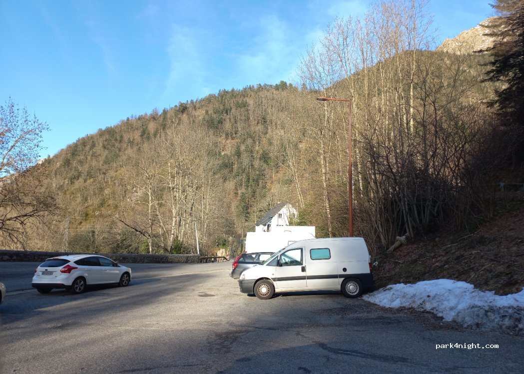 À ne pas recommander l'été, La route est passante,et il y'a des spots bien plus agréable pas loin. Cependant, c'est souvent l'unique stationnement possible pour aller au lac de Bisous,le parking plus haut étant systématiquement plein en journée.