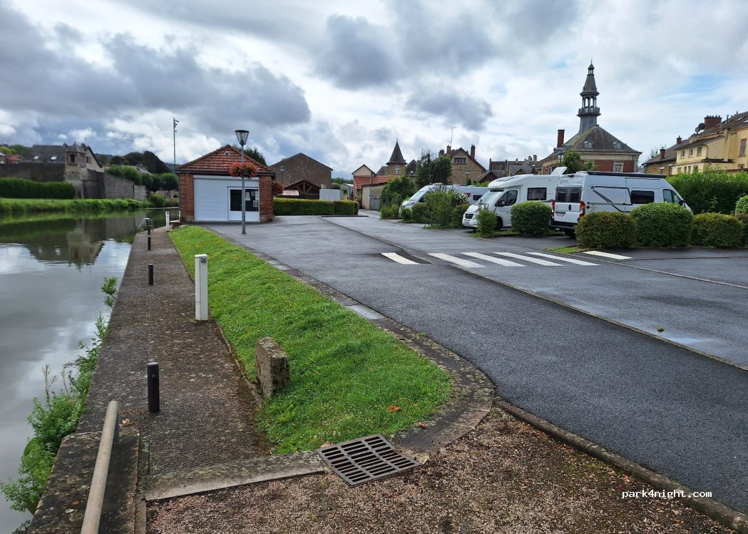 Bien agréable, vue sur le canal de Mouzon, tranquille la nuit, au calme, 8 euros tous compris par 24h, sympa la balade. Bonne route à tous