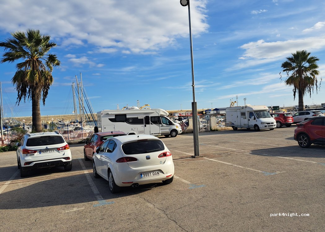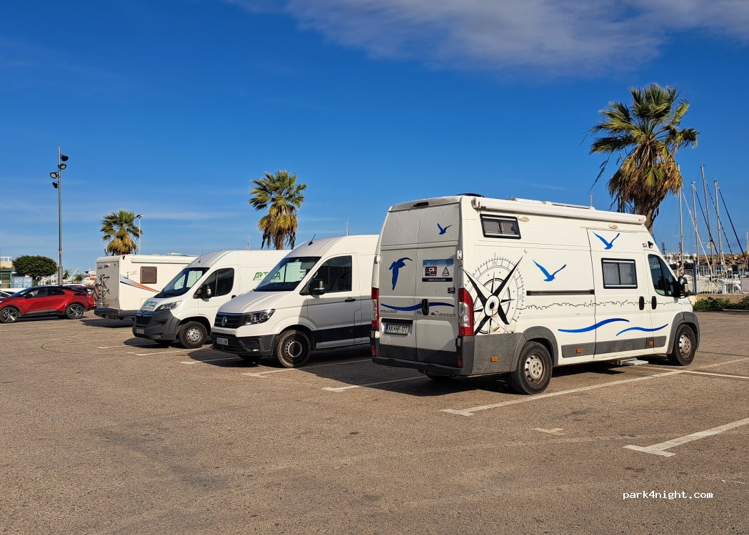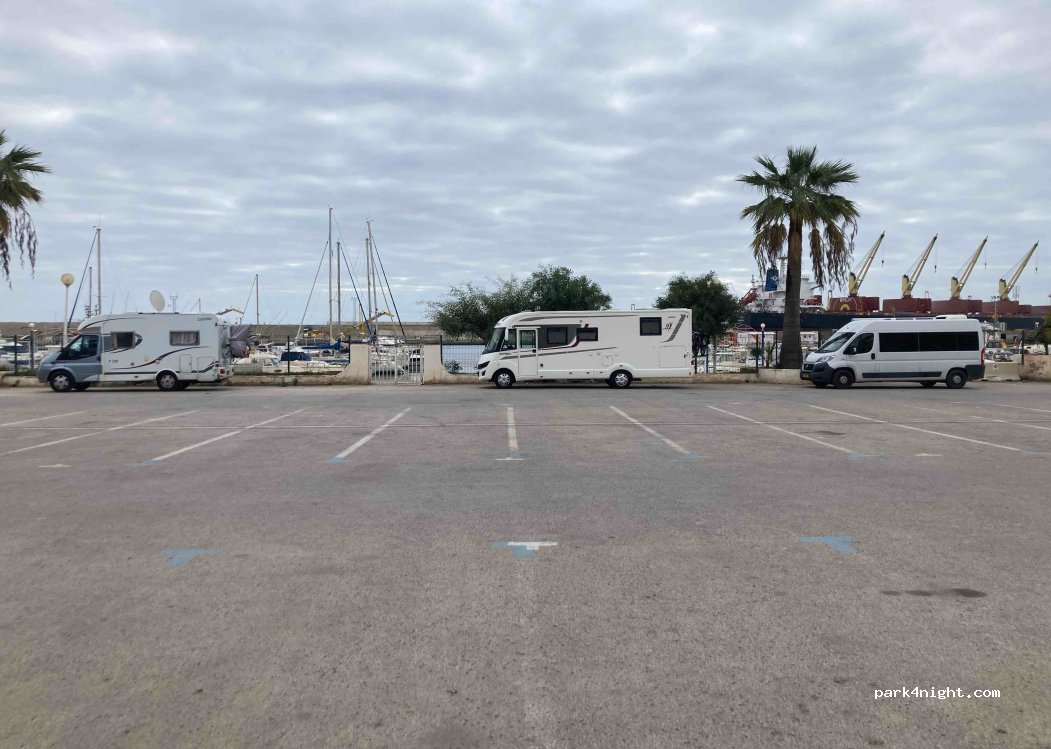 Good place for vans of 5m or less as you must park within a standard parking space. We spent one night and are just over but we fit. It's the same everywhere on the coastline and around Garrucha. There are no services, of course, and it's used by the market on Fridays. It's a port carpark so there's plenty of movement/noise from the fishing industry and boats throughout the night. Good location.