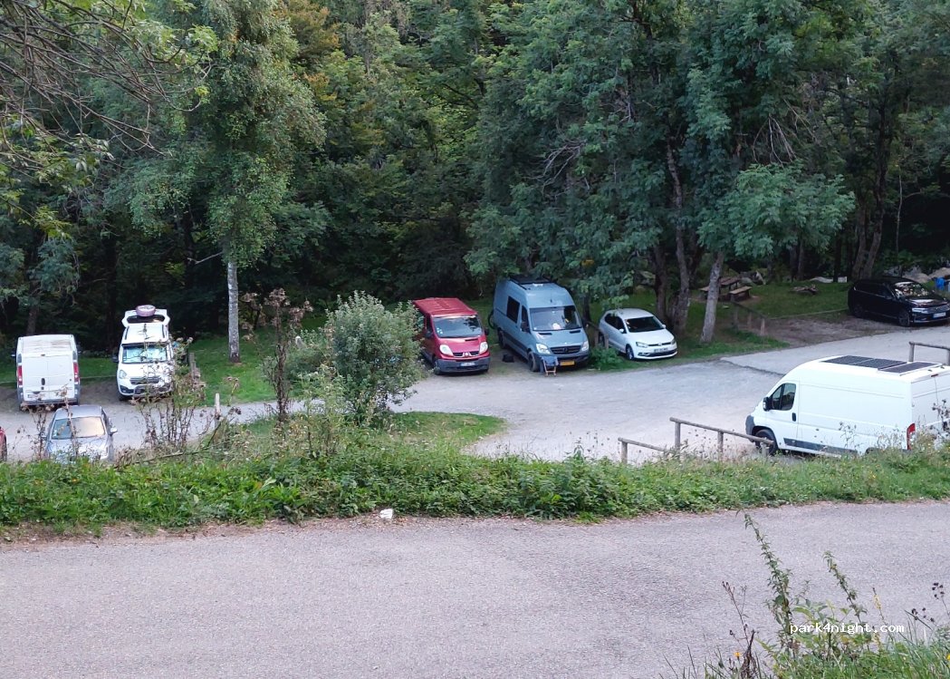 Parking de départ de randonnées correct pour passer une nuit au son de la rivière. Beaucoup de monde en journée et même la nuit mais très calme pour dormir.