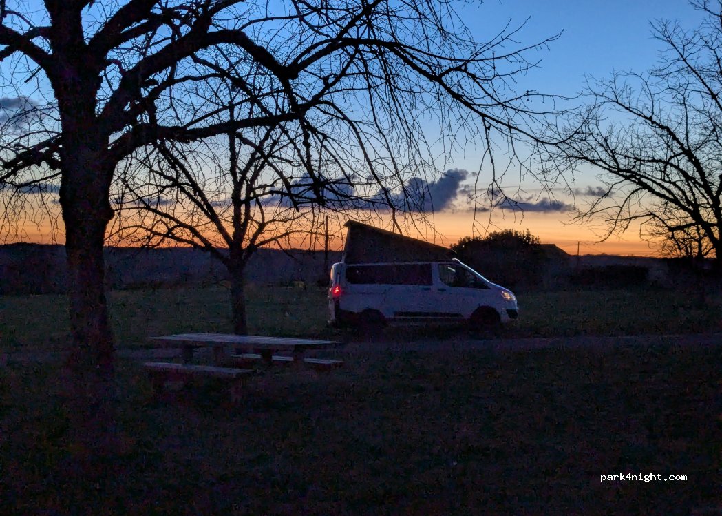 Bonjour, nous avons passés la nuit ici, vraiment super agréable ce matin au levé du soleil avec cette vue sur la campagne, comme déjà cité. Très très calme, comme nous aimons. Réception 4G sans problème.