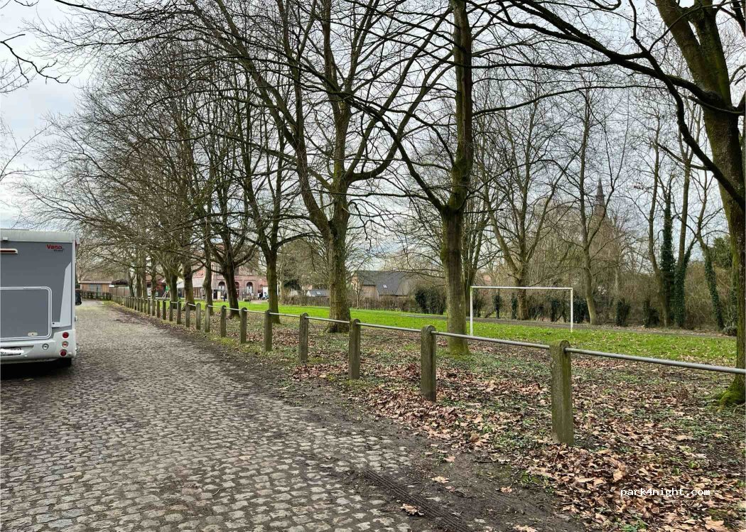 Quiet place just on the edge of the village. You can stand there under the trees or on an asphalt strip just before the entrance to the “bourloire”. Beautiful walks and bike rides possible. Restaurants and shops at no more than 500m.