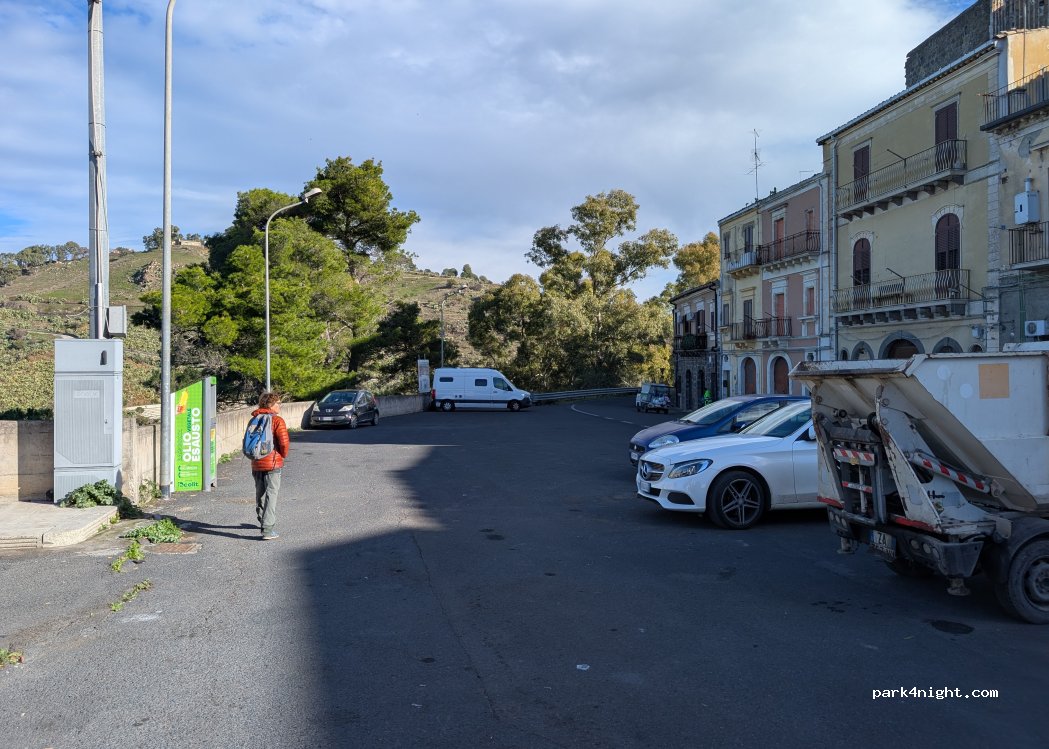 Ampi spazi direi proprio di no. 2 o 3 posti massimo visto che il parcheggio è giustamente pieno di auto. Comunque in serata diventa piuttosto tranquillo e anche se la strada passa vicinissima non è molto trafficata. Siamo venuti qui perché il parcheggio di Caltagirone non ci piaceva e bisogna dire che qui è decisamente più tranquillo (ovviamente non ci sono servizi)