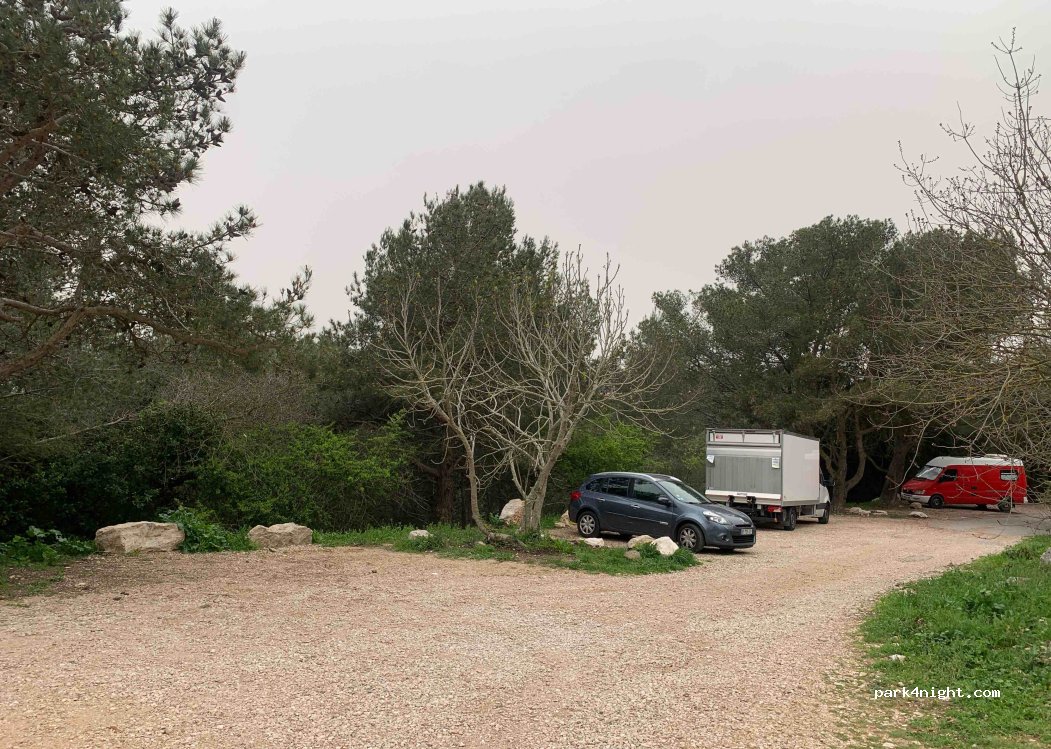 We came here to sleep there but we didn't find any remotely flat area, it was really steep everywhere, so we went to the big parking space higher up close to the tête de chien.