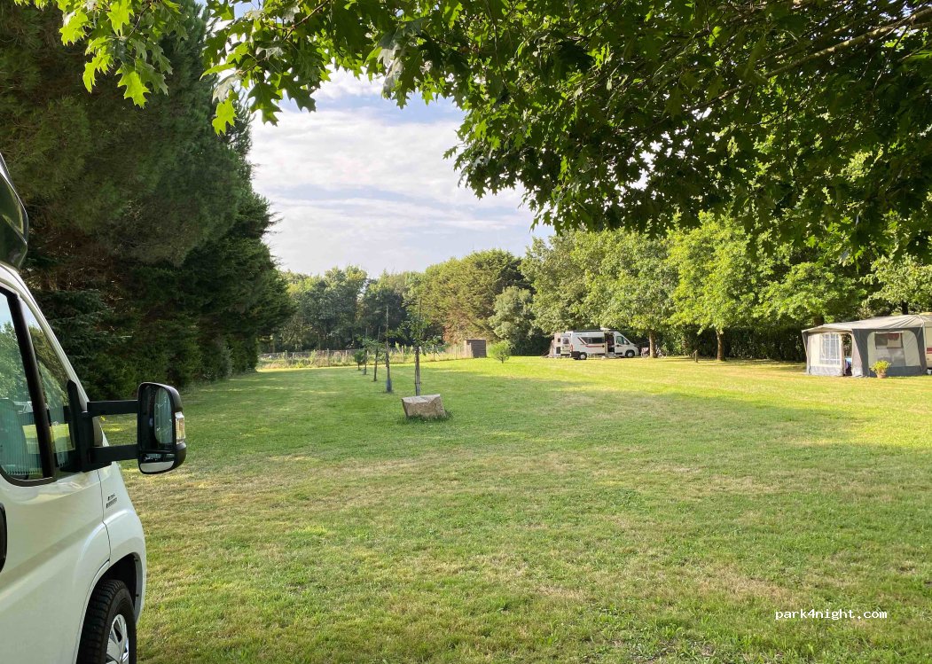 Sehr schöner Platz, sehr grün mit Schattenplätzen unter Bäumen. Auch für größere Wohnmobile (7,5m) geeignet. Sanitäre Anlagen sauber. Warmes Wasser zum Händewaschen und für den Abwasch vorhanden. Weg zum Strand mit Fahrrad innerhalb von 7 min. Einkaufsmöglichkeiten ebenso mit dem Fahrrad innerhalb von 7 min erreichbar. Sehr netter Empfang. Empfehlung!
