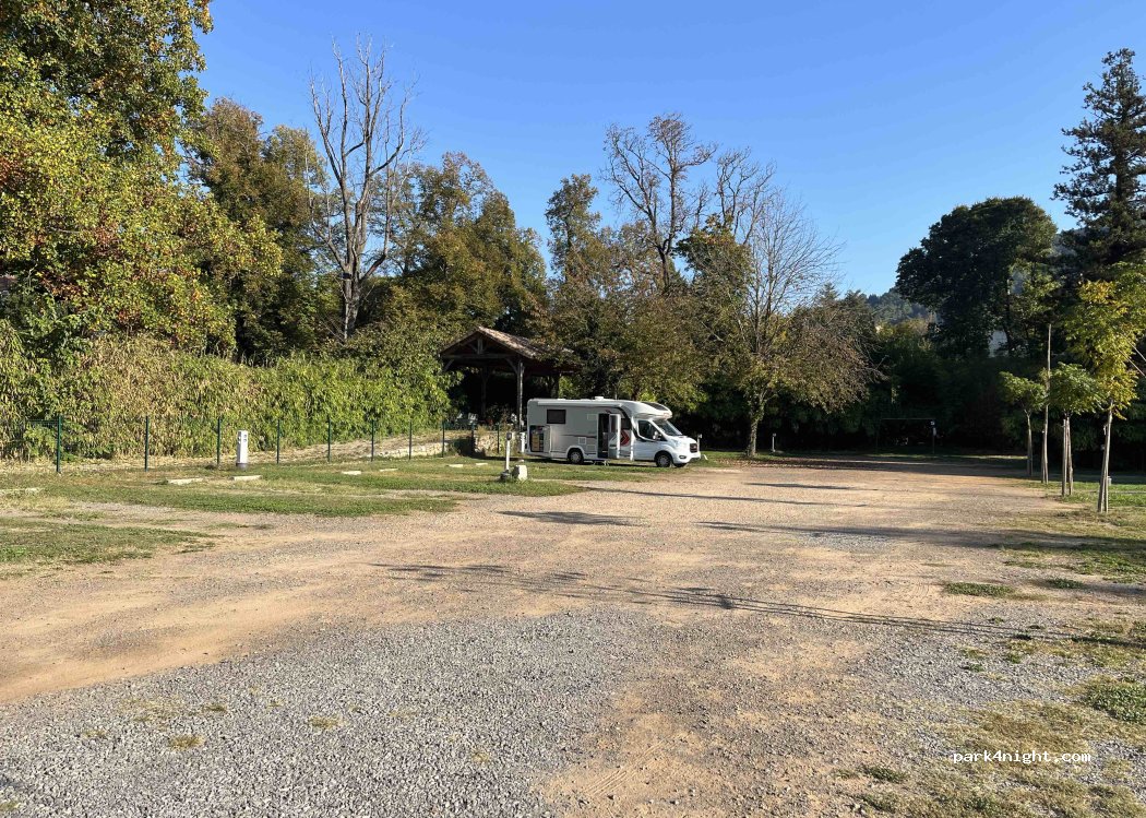 Une aire de camping car magnifique située dans un splendide village. C’est à l’écart de la route et proche de la rivière. Vous vous endormez avec le croassement des grenouilles et vous vous réveillez avec le chant des oiseaux. S’il fallait proposer des points d’améliorations : planter de la végétation pour délimiter les places et mettre à disposition des poubelles de tri sélectif…mais je chipote !