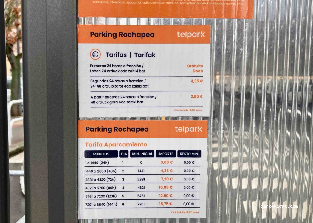 0€ (24h), 4,35€ (2nd day) y 2,85€ every extra day