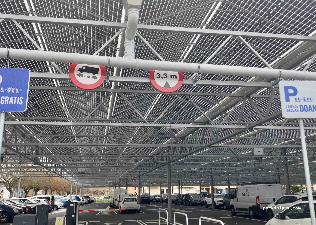 Parking public réglementé (gratuit 24h/24). Il est couvert, pour les mauvais jours, et se trouve dans un quartier résidentiel calme. A 600 mètres il y a plusieurs supermarchés. En 10 minutes environ (en véhicule), vous pourrez rejoindre le centre de Pampelune et il dispose d'un accès facile depuis le périphérique pour entrer et sortir de la ville.