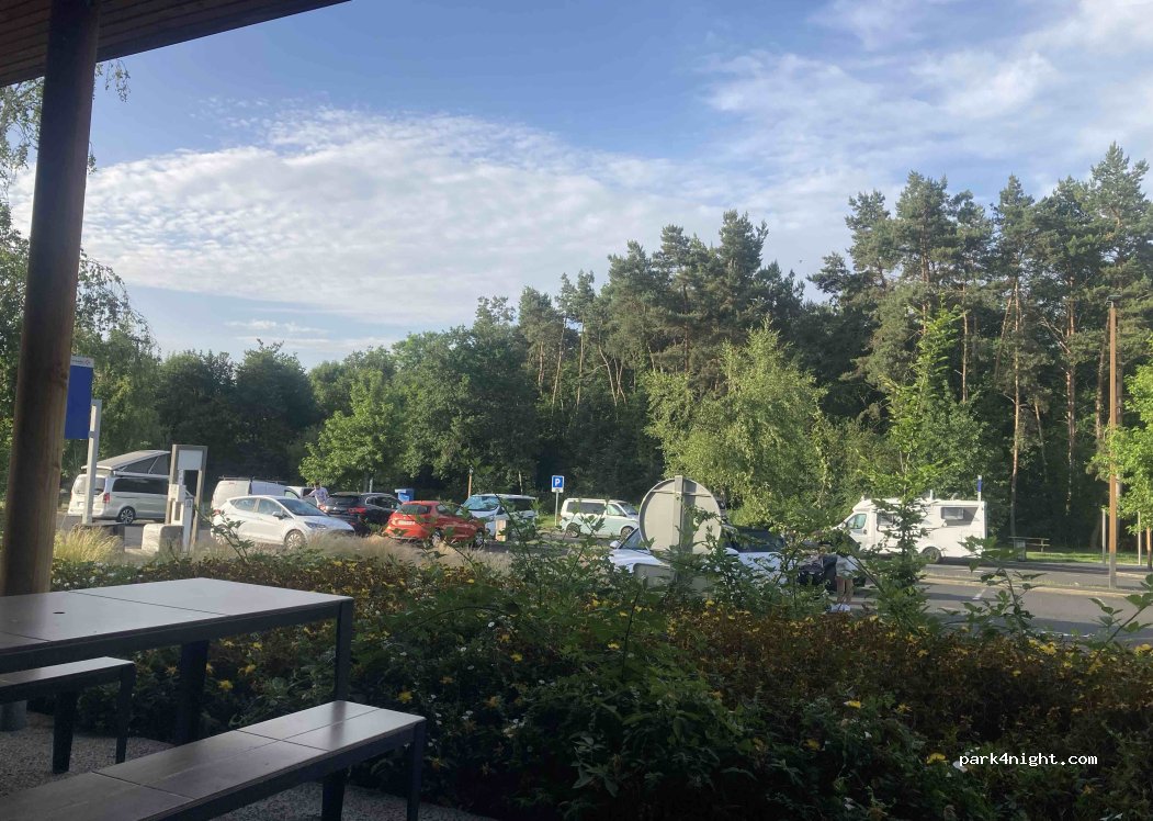 Arrivée à minuit et il reste de la place. Peu de bruit d’autoroute. Aire ouverte toute la nuit. Nous n’avons pas utilisé les services de vidange. Bien pour une nuit, on entend les oiseaux. Bruit du compresseur pour le karcher de nettoyage de la station à 7h00.