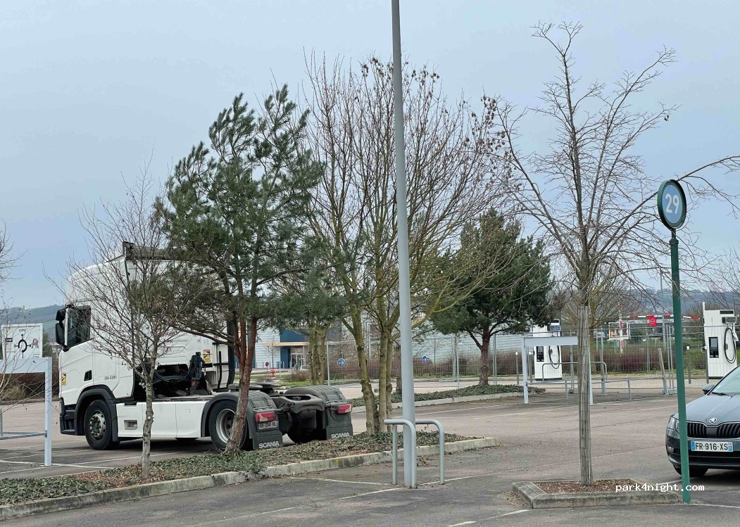 Important : se garer tout au fond à gauche de ce vaste parking. Vous serez à l'arrière du magasin. Venons d'y passer une nuit paisible en présence de 6 autres camping-cars et d'une dizaine de camions. Les camions repartent de bonne heure mais cela ne nous a pas dérangé. La borne de service se trouve de l'autre côté du magasin. Grand merci à Auchan de nous accueillir !