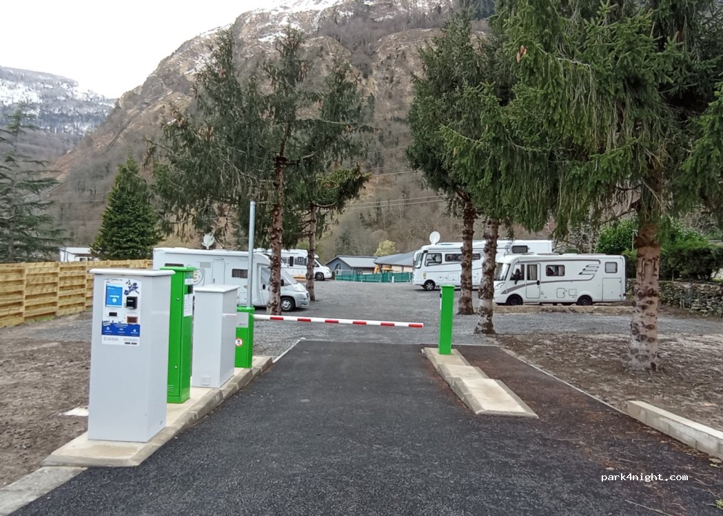 Aire CAMPING-CAR PARK de Laruns, Le Bourg dispose de 10 emplacements électrifiés et de tous les services nécessaires : vidange, eau, ...
