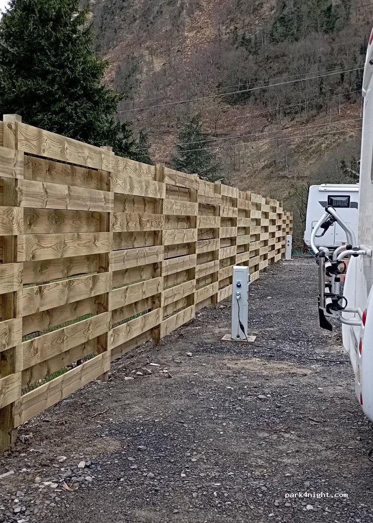 Das CAMPING-CAR PARK-Gebiet von Laruns, Le Bourg verfügt über 10 elektrifizierte Stellplätze und alle notwendigen Dienstleistungen: Entwässerung, Wasser, ...