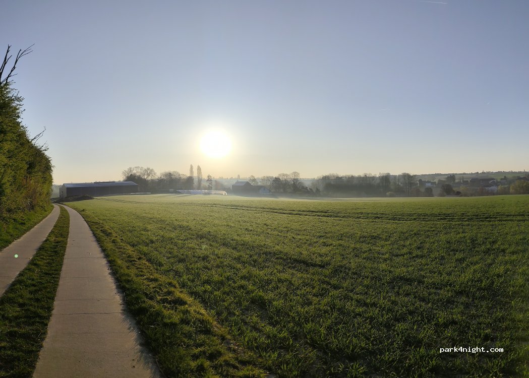 In het midden van de velden van Loupoigne, een kleine parkeerplaats langs een begraafplaats aan het einde van een relatief smal steegje dat overgaat in een groene weg (RaVel). Perfect voor een stille nacht!