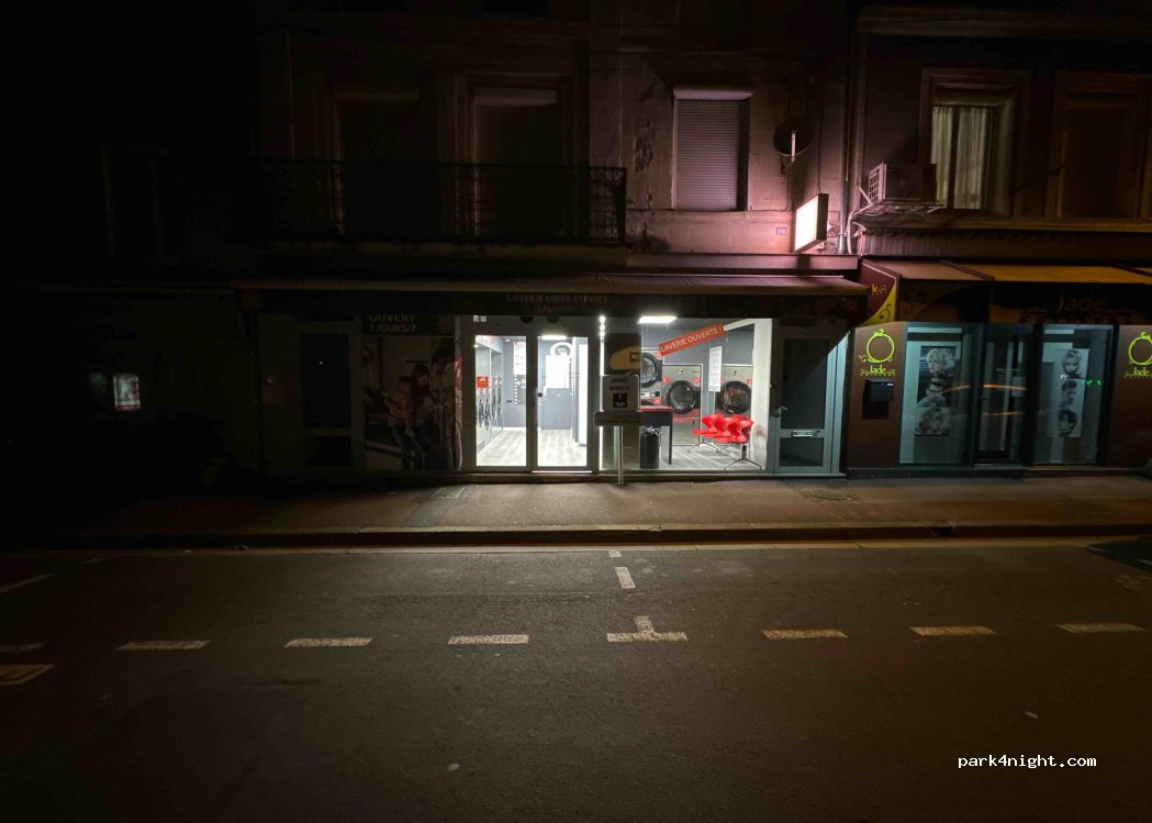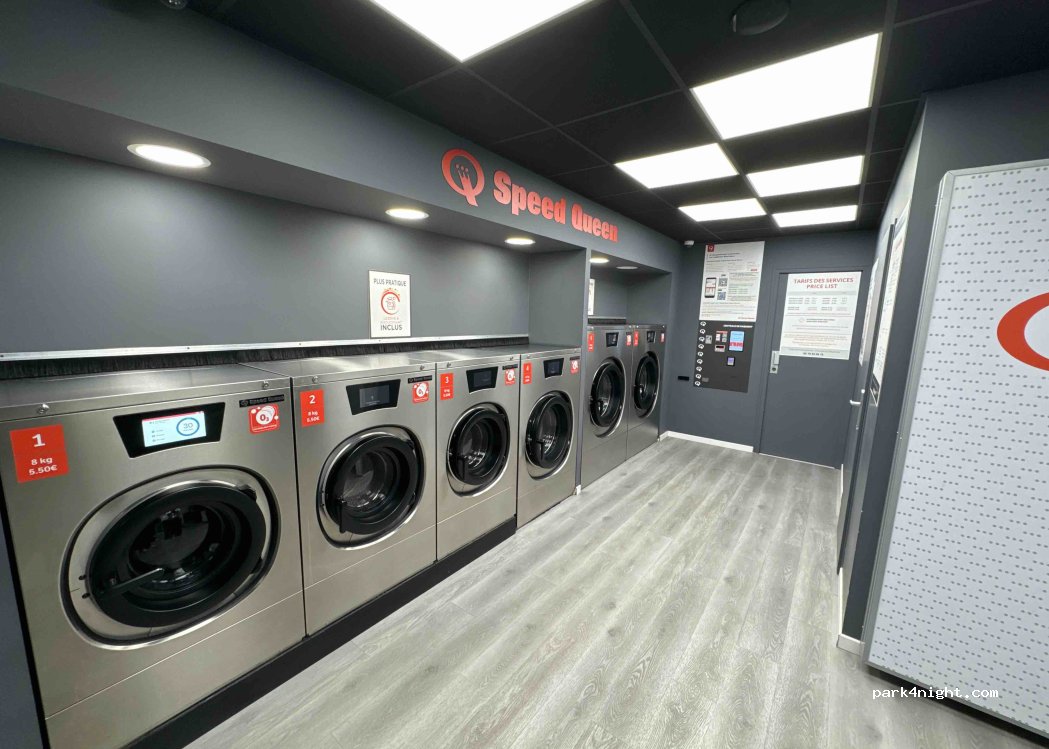 Laverie avec parking dans la rue, mais facile d’accès en camping car.