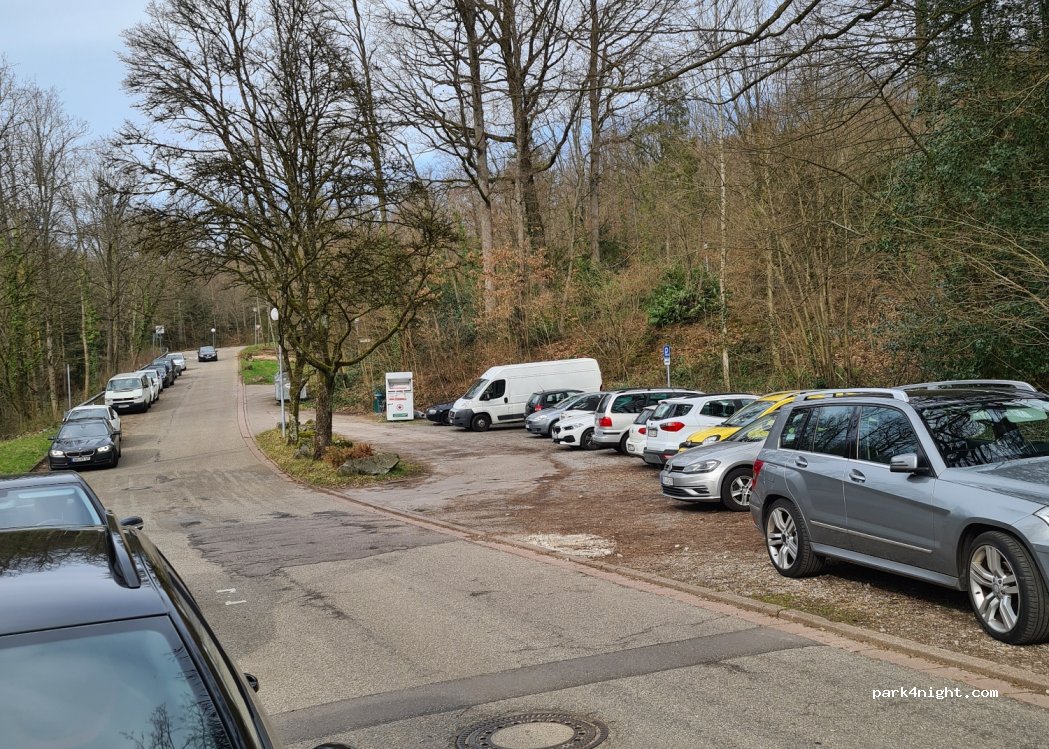 Kleiner Parkplatz mit etwa fünfzehn Stellplätzen