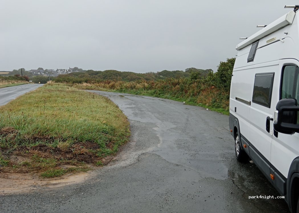 Layby next to the road. This layby seems a good compromise. Short drive to the coast!