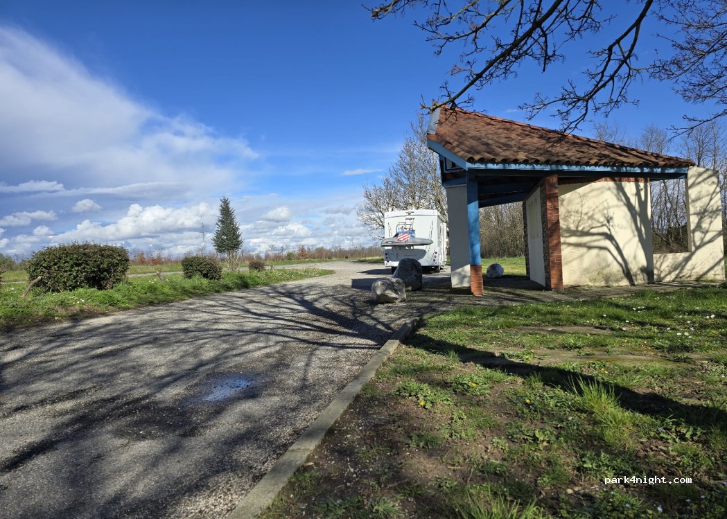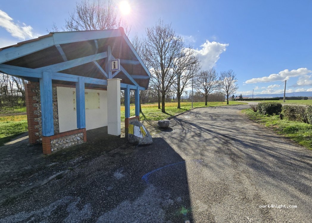 Petit parking avec poste d'informations