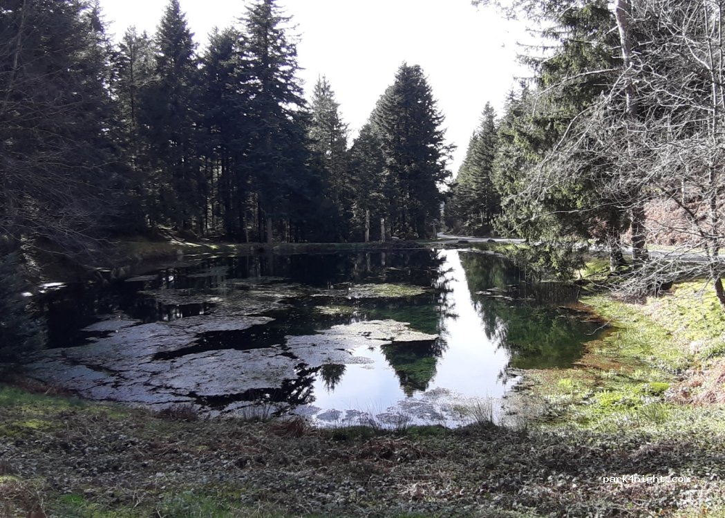 Nous ne sommes pas restés pour dormir. Toute petite place sur le bord de route. Juste pour pause repas compte tenu de la table présente mais pas plus. Pas d'étang en août mais une flaque marécageuse.