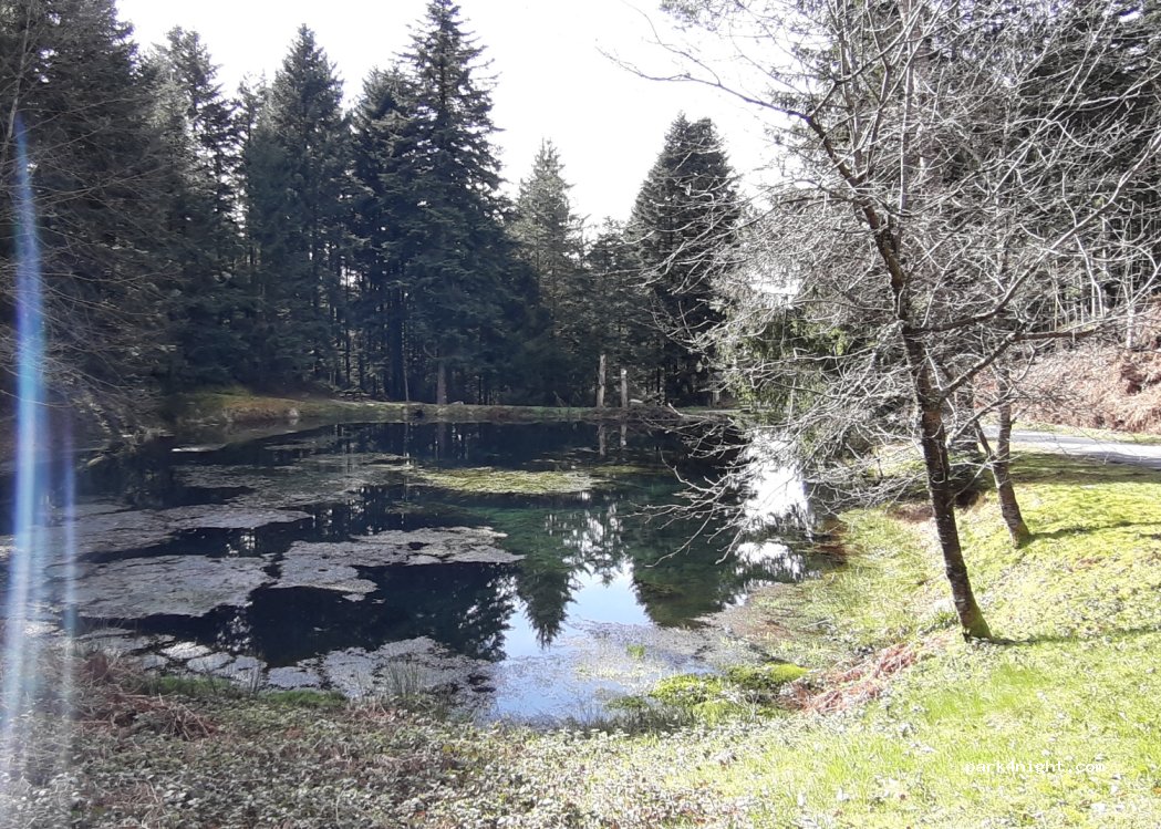 Nous nous sommes arrêtés le temps d’une pause méridienne. Le spot est chouette, très calme. L’eau de l’étang est translucide, le bruit de la rivière est très doux. Il y a un petit parking en cailloux, peu de passage sur la route qui jouxte l’aire, une table de pique-nique mais pas de poubelle.