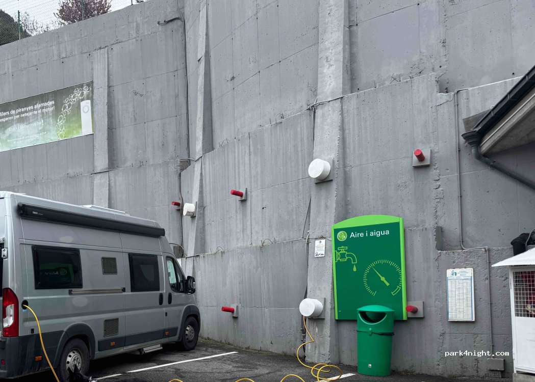Station service avec eau potable gratuite. Il y a un robinet connecté à l'air de remplissage des pneus, et à gauche un autre robinet auquel vous pouvez connecter un tuyau. Je descends d'El Tarter pour faire le plein d'eau pendant la saison de ski.
