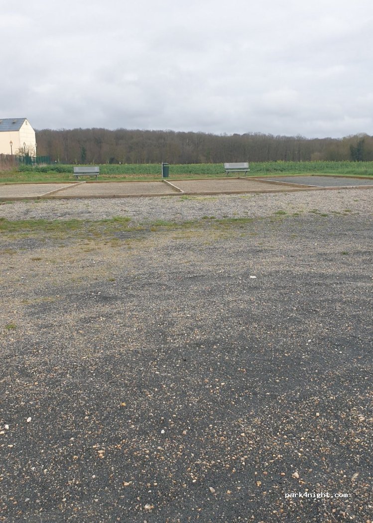 Parking,tranquille pas de bruit dormi une nuit, pas de soucis,terrain de pétanque à côté. Pas désert près d’un lotissement.