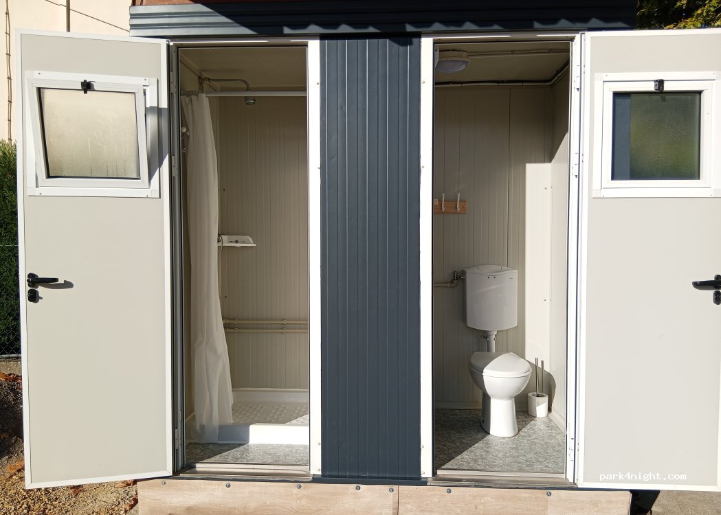 Accès aux toilettes et aux douches chaudes inclus dans le prix.