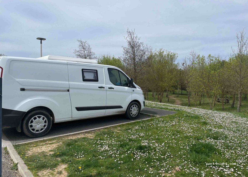 Parking de l’école libre, pas de restriction. Une table pour pique-nique. Point culminant avec vue sur l’ancienne mine. 10mn du parc des titans (engins de chantier).