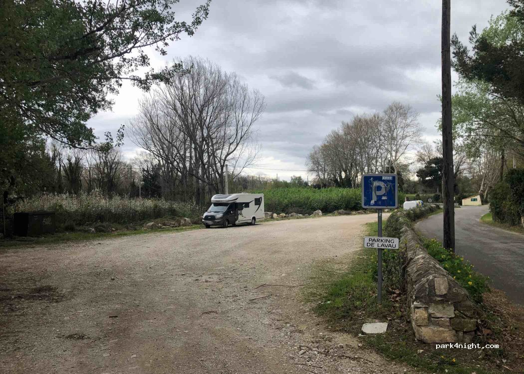 Quiet Lavau parking lot. Practical for a break. Wide enough for all types of vehicles.