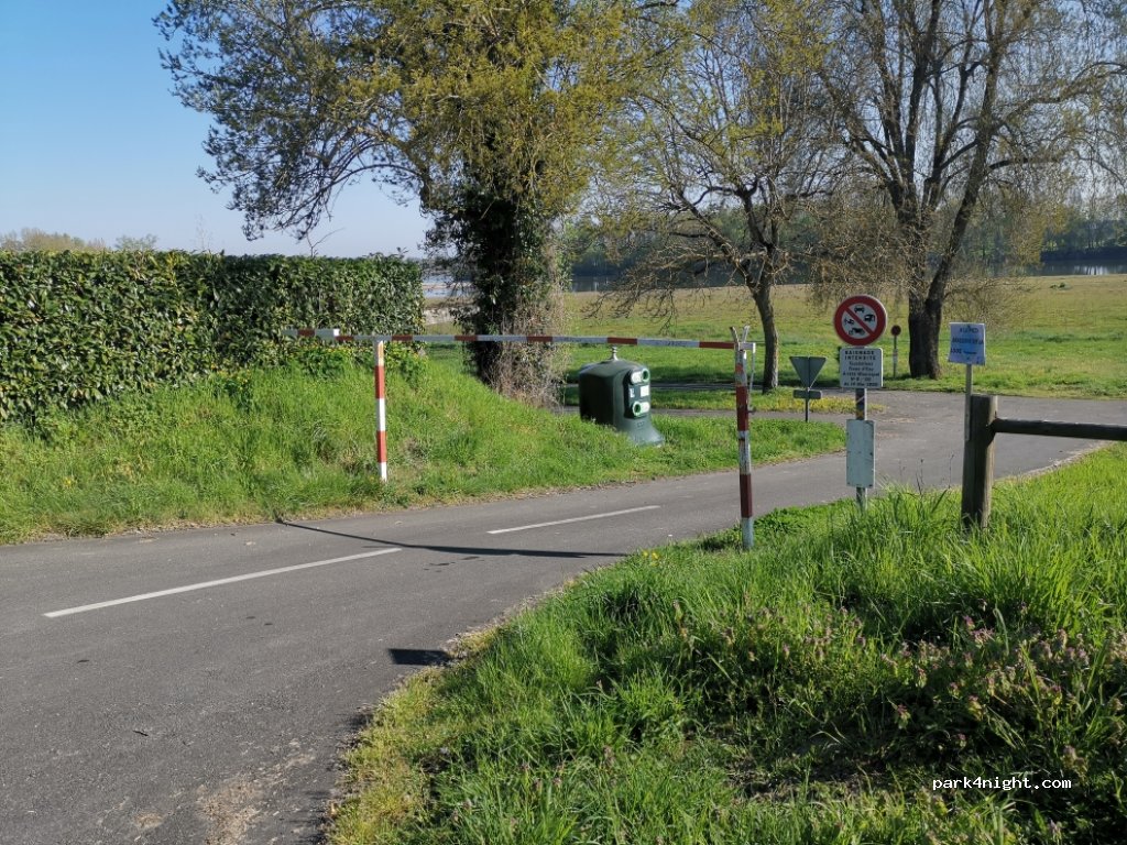 Lugar perfecto para pasar la noche en plena naturaleza, un pasaíso a orillas del Loira. La carretera casi no tiene tráfico. La barrera de 2 metros está levantada. No utilizamos los servicios pero se pueden vaciar aguas grises y negras, aunque no hay grifo con agua. Gracias al municipio!