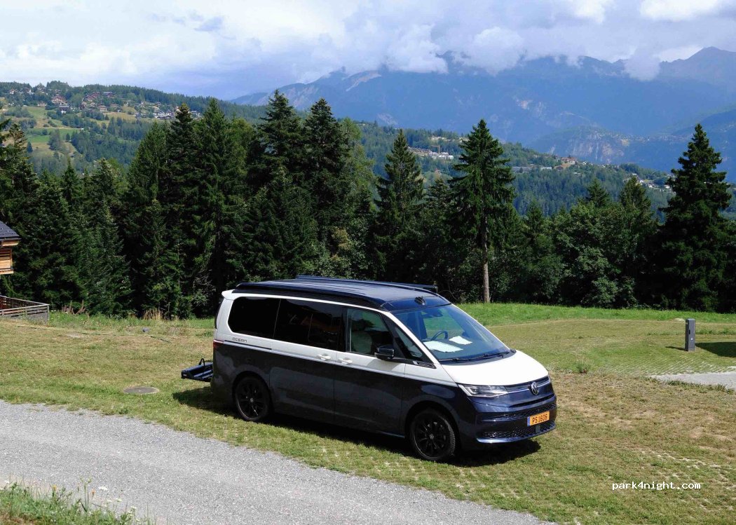 Woodland Village alquila, además de los pequeños chalets que componen el lugar, varias parcelas para autocaravanas. Precio 45.- por noche + impuestos turísticos. Vista muy bonita a las montañas. Duchas, baños disponibles. Restaurante con bar y juegos abierto hasta las 23 horas. Muy silencioso. Parada de autobús cercana para subir al pueblo de Anzère o a los remontes. Hay autobuses cada hora y la estación está a 5 minutos.