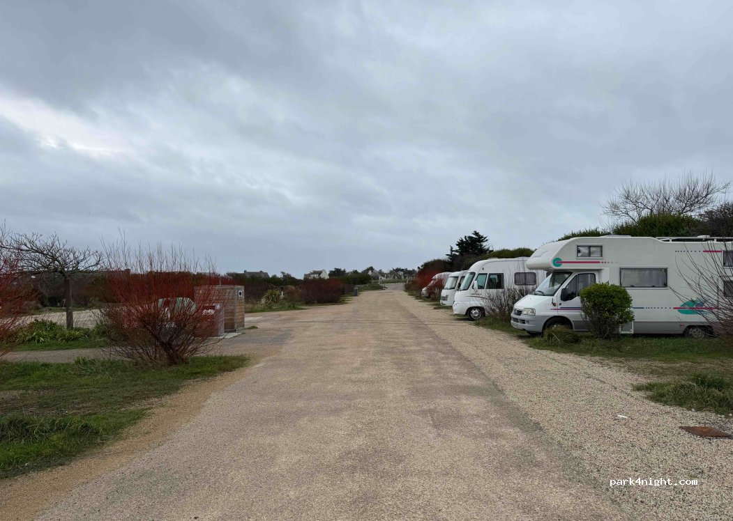 Ubicación genial, a un paso de la playa de Pen Hat y de alineamiento de menhires lagatjar. Se entra con cajero y barrera, 14'50 las 24 h con electricidad. Tranquilo, sin ruidos, seguro, parcelas amplias y llanas. Para el agua es necesario conector macho macho. La zona algo embarrada, no cementada. Tiene para vaciar negras y grises.