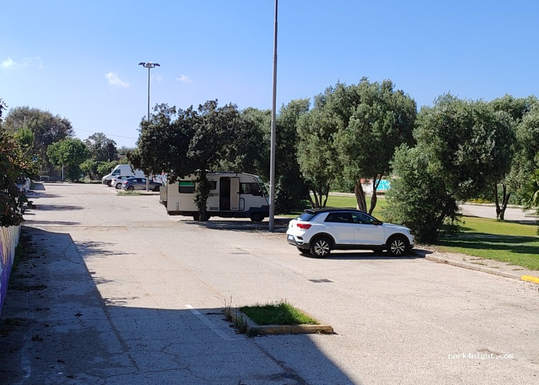 Parking next to the port, perfect for exploring Porto Torres or taking the ferry to Grimaldi. We spent the night in a van, although it was Saturday and from time to time you could hear some people as it is very close to the pub area, we were able to rest well. Very close to a road that stops traffic at night. Free