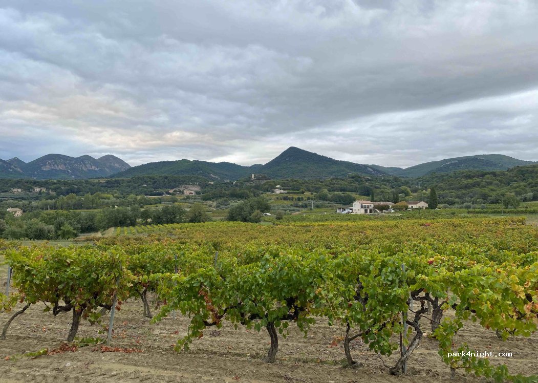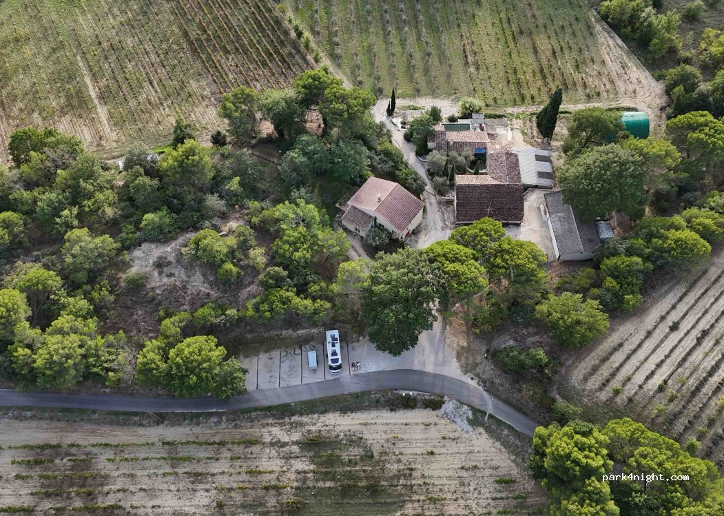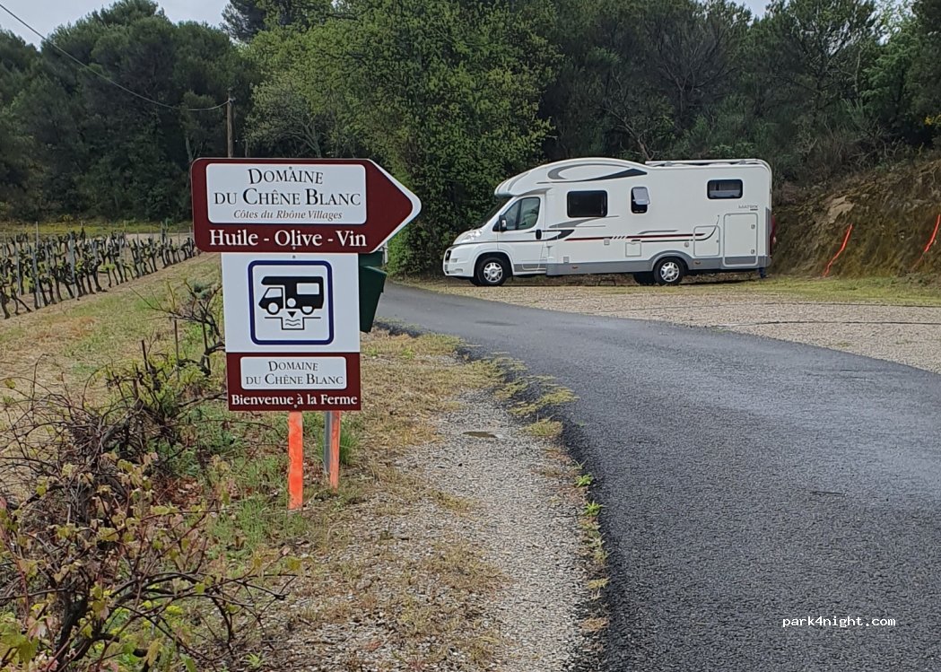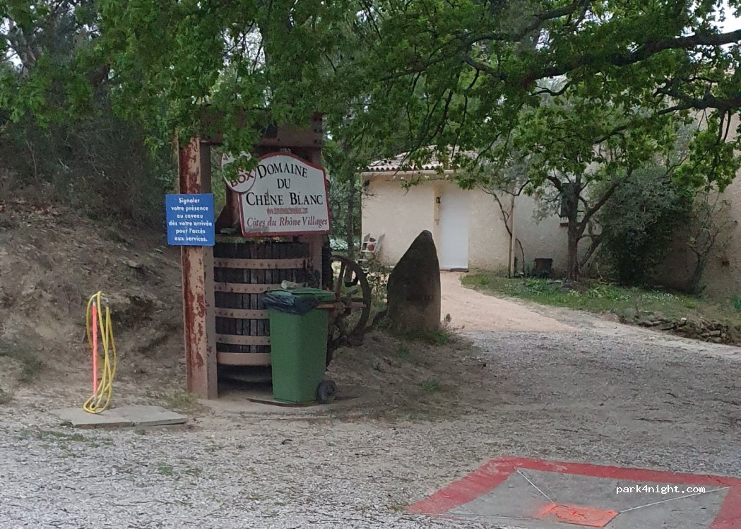 Aire camping car 5 places Domaine du Chêne Blanc au milieu des vignes chez un propriétaire récoltant où vous trouverez vin et huile d'olives et très bon accueil. vous pouvez y accéder en passant par la route chemin des combes .