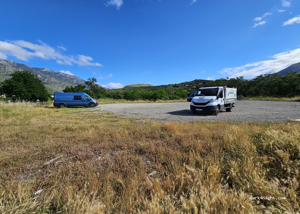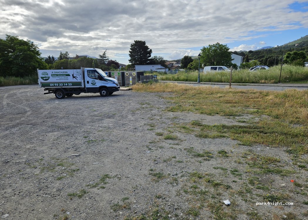fine place, flat, near the trainstation. and quiet for a city parking. absolutely not as dirty as you would think. we parked here and went on a trainride to Ajaccio and back. 23 euro pp.