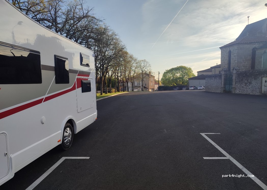 Grand parking au centre du village, grandes places, pour stationner avec n'importe quels véhicules, aire de jeux et city stade WC public tables de pic nique.
