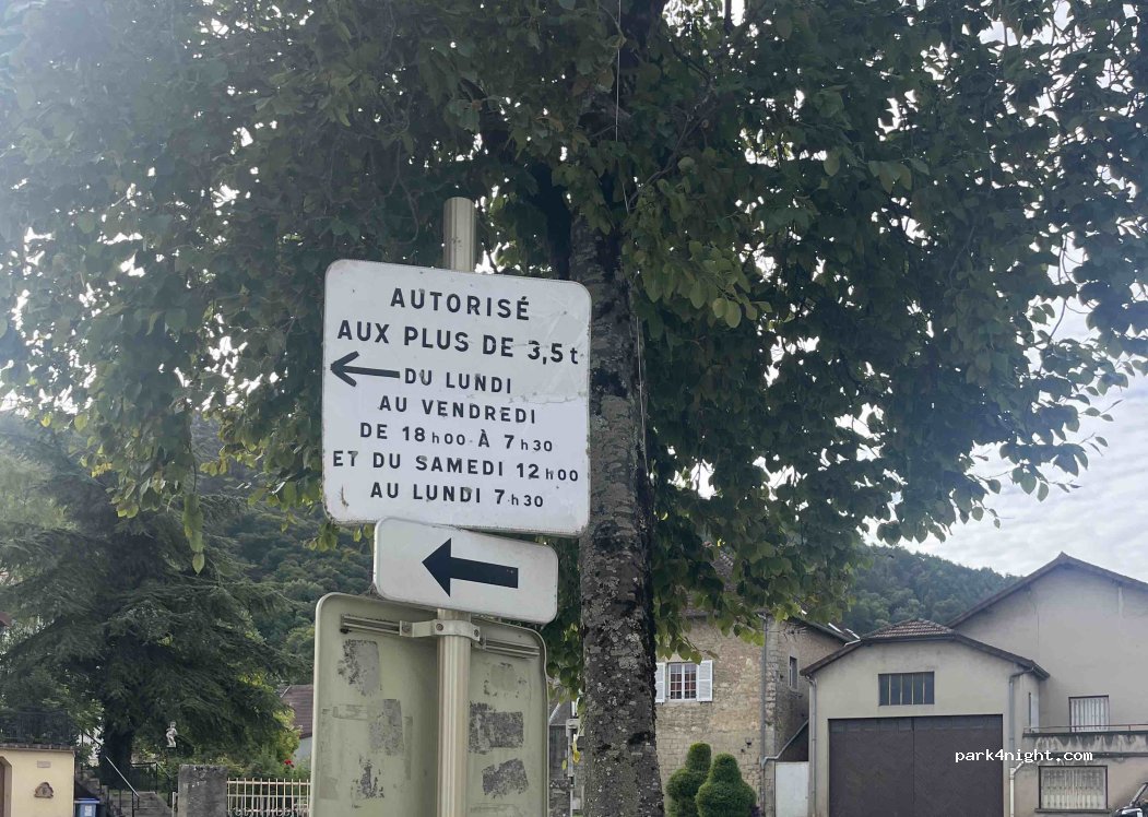 Parking pour véhicule de plus ou moins de 3,5 t sur cailloux, près du centre ville, peu d'ombre, possibilité de dormir. Une fontaine d'eau à côté des WC.