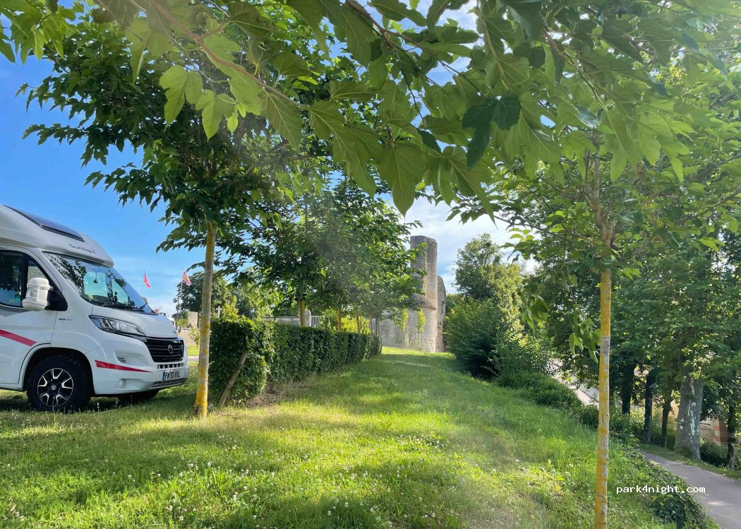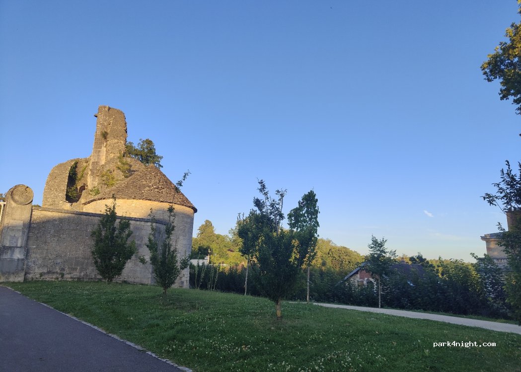 Grosse montées étroites pour y accéder (attention avec un grand véhicule). La nuit calme, aucun passage. Par contre la journée c’est assez animé par des visites guidées (piétons et voitures). Toilettes fermés mais il y en a a côté de la Source de la Douix. Pour l’eau, entrez dans le cimetière à droite et suivez le mur plusieurs mètres il y a le robinet (besoin d’un récipient et de se baisser)