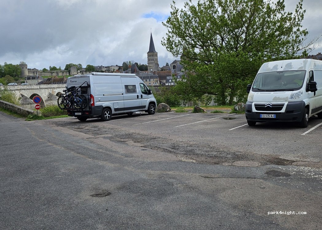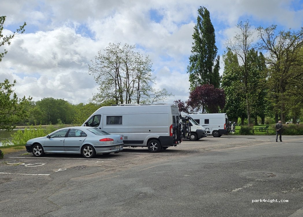 le 1er parking était plein. on est venu au second. on a bien dormi. endroit calme avec une vue direct sur la Loire, le pont et la vie aux remparts. de belles promenades alentours.