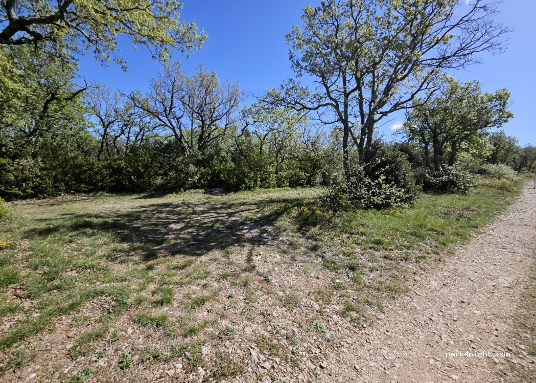 Nice flat place on the edge of the slope away from the road. Great for spending the night. Leave it clean when leaving. Good discovery.