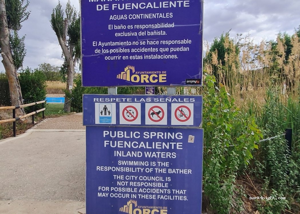 swimming in mineral water. parking free. At low season (October) hardly anyone.