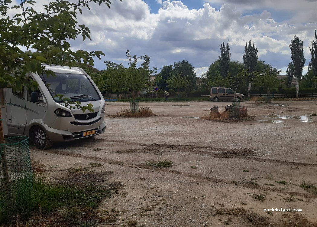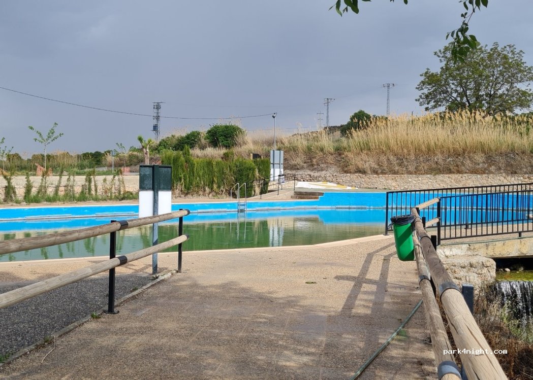 Aparcamiento para la piscina natural y ajardinada.