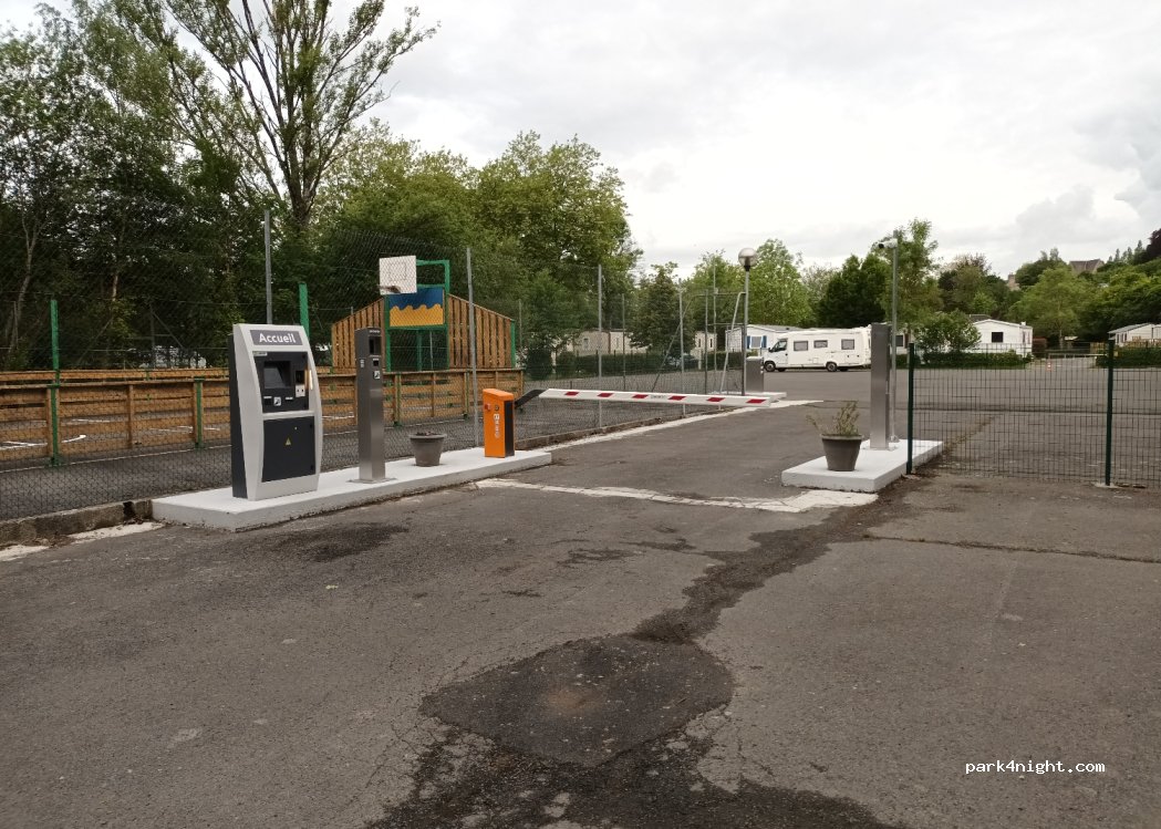Entrée par barrière automatique sans problème. Borne de service peu pratique et pas adaptée au cc de 7m80, les eaux grises s'écoulent sur le parking....pas d'emplacements délimités, a cette saison ok mais ça doit être compliqué en pleine saison. Sol stable bitumé, cales malgré tout. Branchement électrique 16 amp. Endroit sans réel intérêt, juste pour une étape. prix correct, moins de 13 euros.