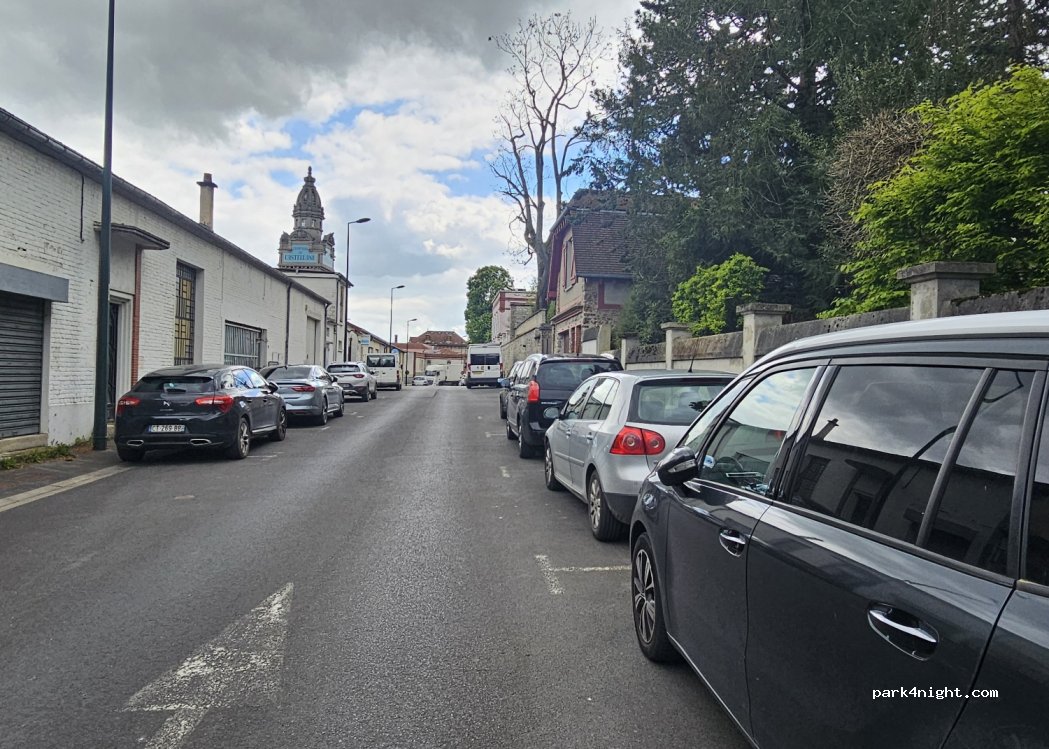 Rue calme juste à côté de l'avenue de Champagne. Nous nous sommes garés ici dans notre camionnette pour une nuit sans problème. Les espaces sont mieux adaptés aux vans, ils pourraient être trop petits pour un camping-car